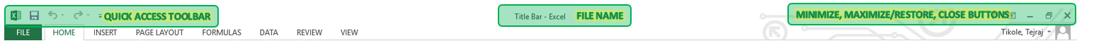 It shows the file name which we have given to our excel file. In below screenshot, “Title Bar” is the name of excel file and “- Excel” indicates that this is excel file.