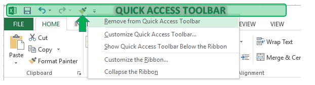 4. To remove desired command from Quick Access Toolbar, just right click on the command and then select option “Remove from Quick Access Toolbar”.
